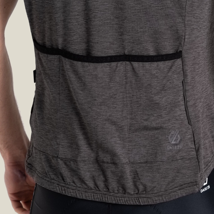 There are 2 compartments at the back for your essentials. The half zip creates an easy-wear piece. Whether a short intense session or a full day in the saddle, the reflective print details will help you stay seen.