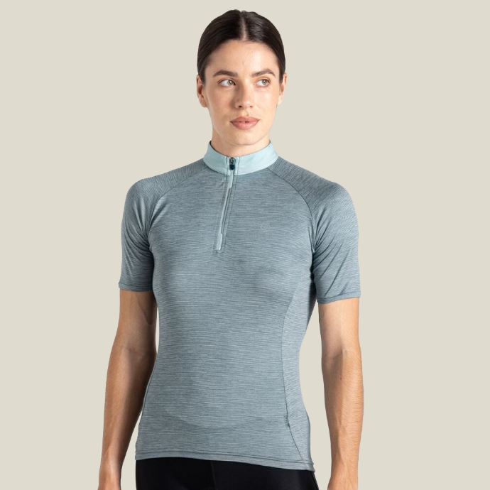 The Women's Pedal Through It II Jersey. Crafted with our Q-Wic Plus recycled fabric, the ladies short-sleeved cycling top accelerates drying, moves moisture to the surface and repels odour-causing bacteria to help you stay fresh.